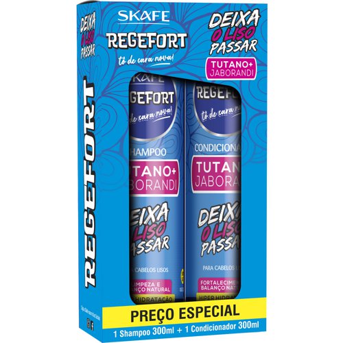 Kit Regefort Deja que pase Mi Liso para un liso natural, brillante y radiante, propio de cualquier alfombra roja. La más alta tecnología capilar para un efecto liso duradero con Tuétano y Jaborandi, este pack para cabello liso Skafe contiene activos naturales que actúan desde la raíz hasta las puntas ofreciendo una potente hidratación, sellado y facilitando el peinado.